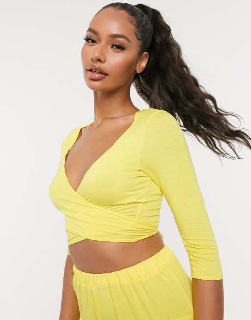 Product Name: Yellow wrap crop top top