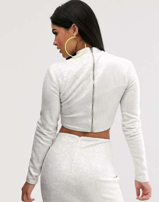 Product Name: White long sleeve sequin top top