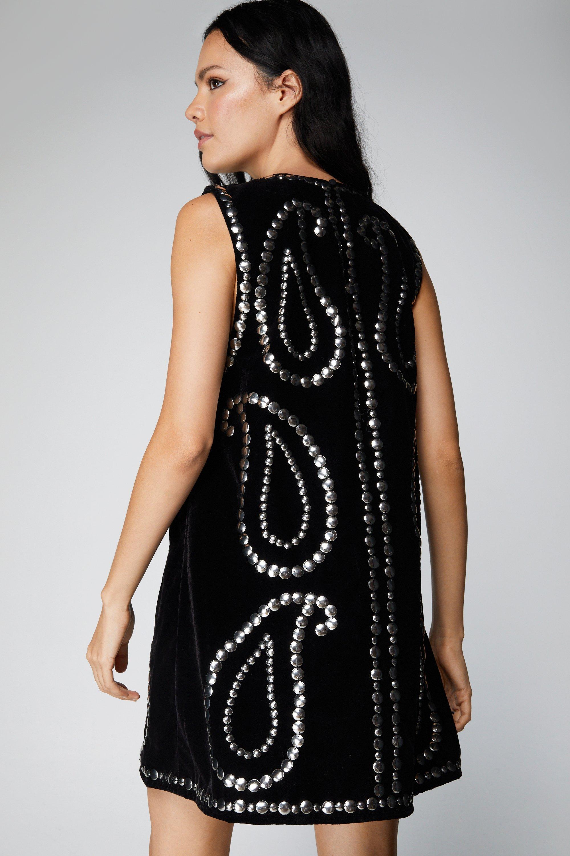 Product Name: Black embellished shoulder shift dress top