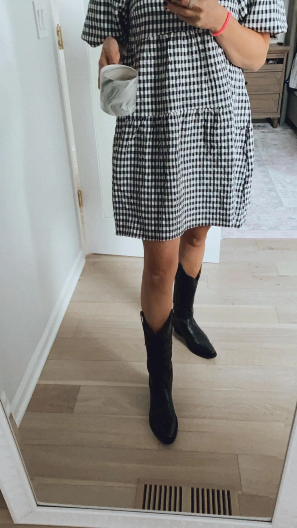 Product Name: Black and white checkered cowboy boots top