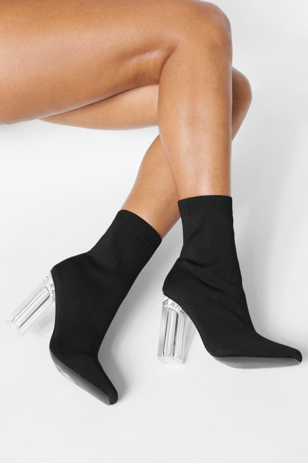 Product Name: Black sock boots clear heel top