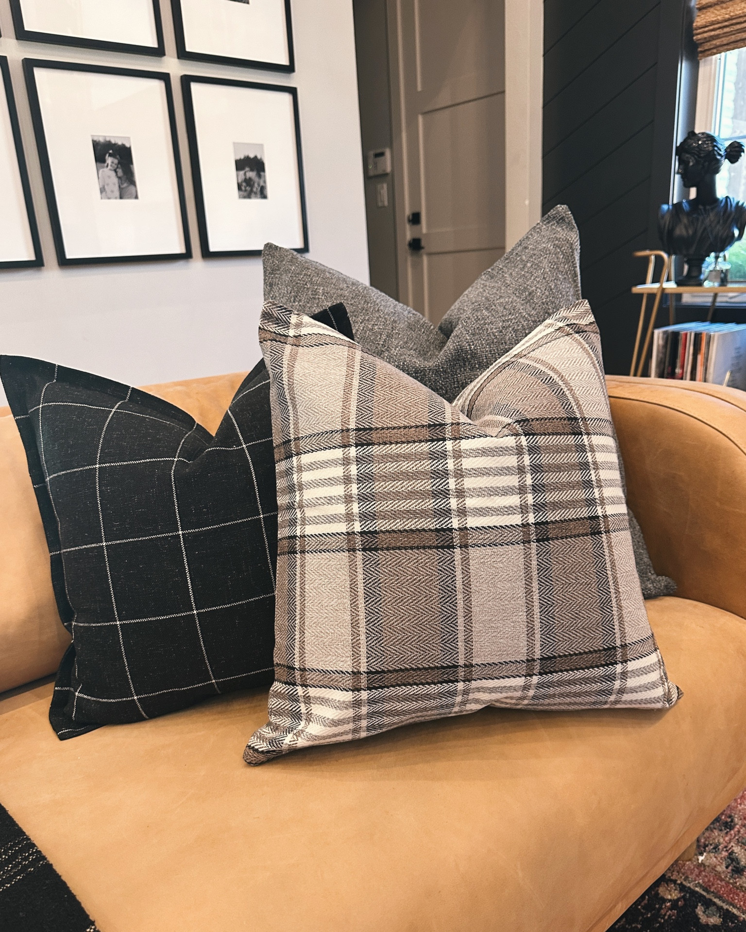 Product Name: Gray and white plaid pillows top