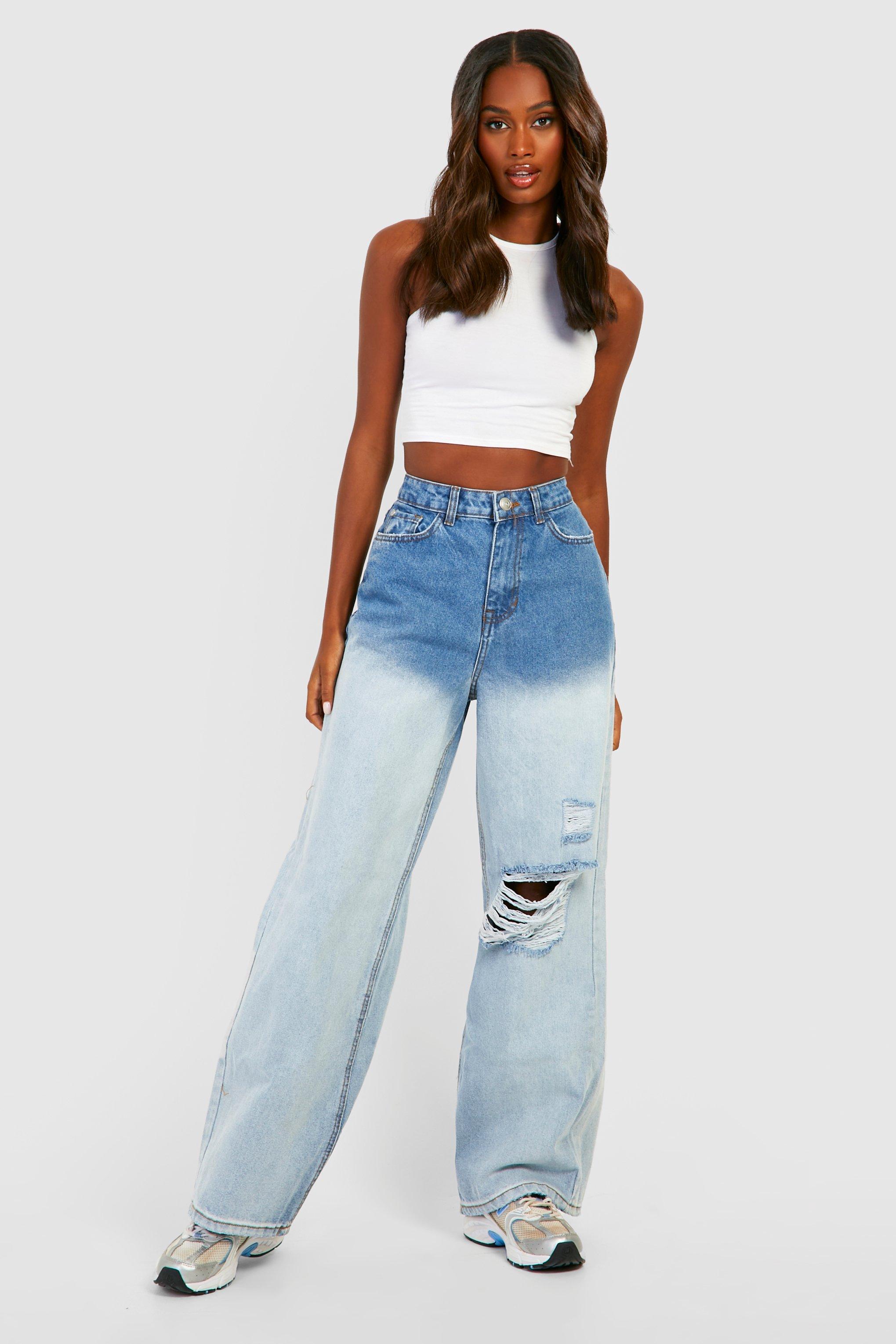 Product Name: Mid wash baggy low rise distressed boyfriend jeans top