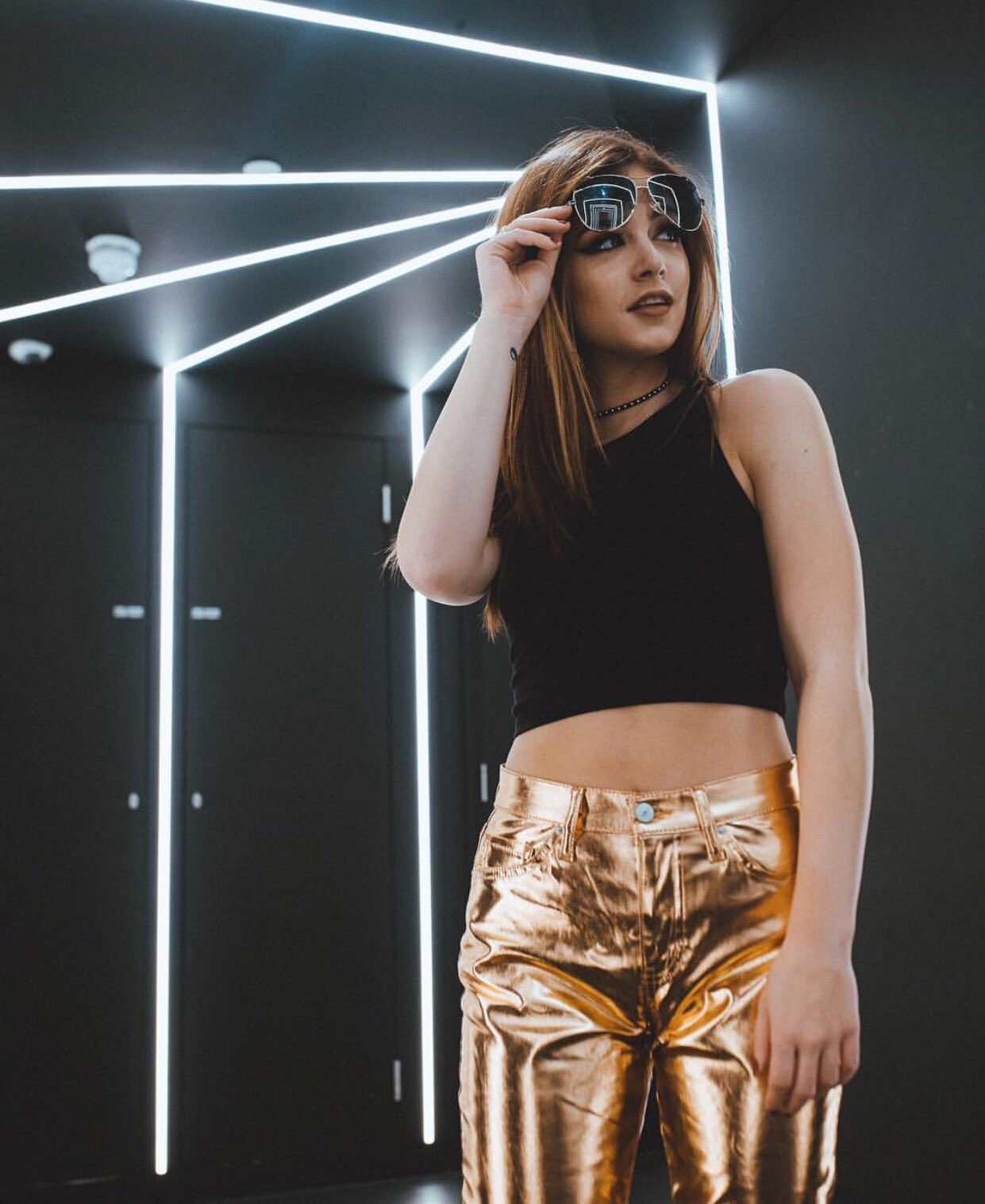Product Name: Rose gold leather pants top
