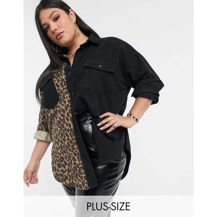 Product Name: Denim leopard print shirt top