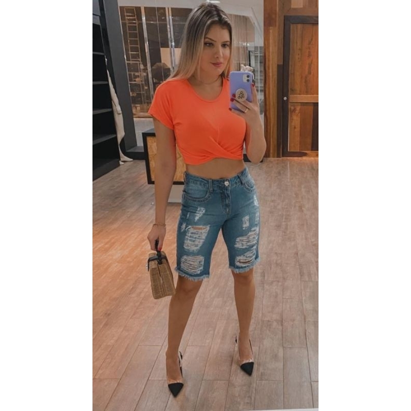 Product Name: Bermuda jeans feminina rasgadinha top