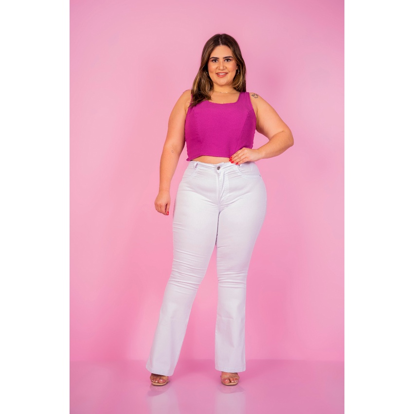 Product Name: Calça branca flare plus size top