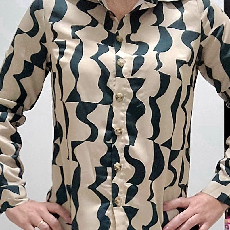 Product Name: Camisa de seda estampada feminina top