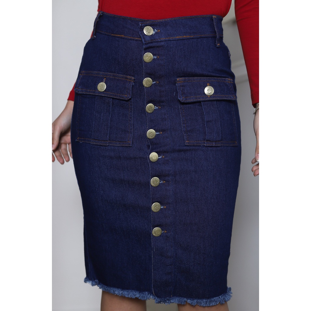 Product Name: Saia jeans cintura alta com botoes na frente top