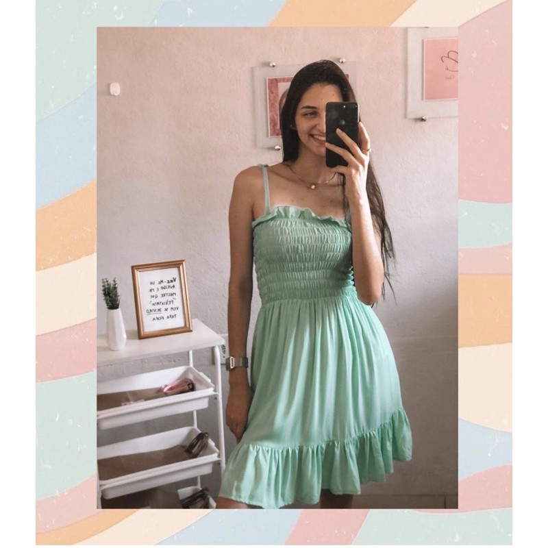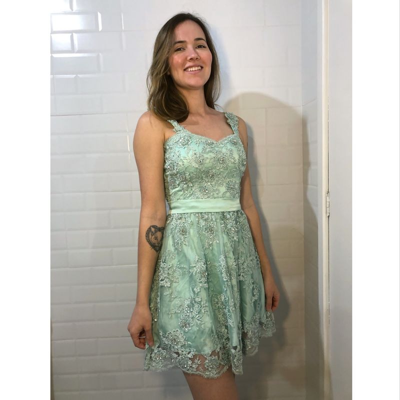 Product Name: Vestido de festa verde agua curto top