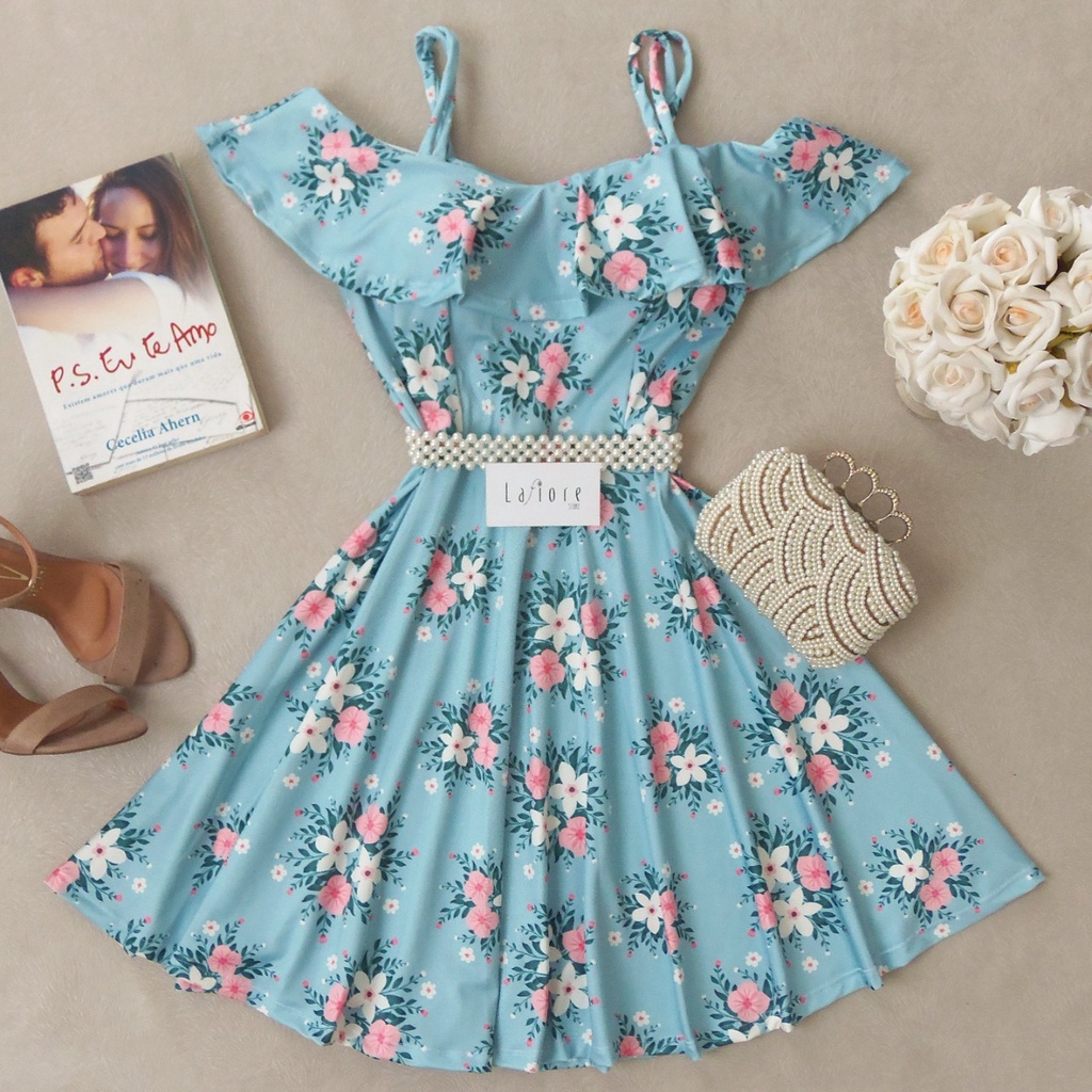 Product Name: Vestido azul claro rodado curto top
